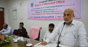 আরিফ রববানী ময়মনসিংহ।। বাংলাদেশ কৃষি বিশ্ববিদ্যালয়(বাকৃবি) এর তৃতীয় শ্রেণীর কর্মচারীদের পেশাগত দক্ষতা উন্নয়নের লক্ষ্যে গ্র্যাজুয়েট ট্রেনিং ইন্সটিটিউট (জিটিআই) এর তত্ত্বাবধানে পরিচালনায় দুই সপ্তাহব্যপী “বেসিকস অব এমএস অফিস” শীর্ষক প্রশিক্ষণ কোর্সের উদ্বোধন করা হয়েছে। রবিবার (১৯অক্টোবর) সকাল ৯.৩০টায় বাকৃবির জিটিআই শ্রেণীকক্ষে অনুষ্ঠিত হয়েছে। এতে প্রধান অতিথি হিসেবে উপস্থিত ছিলেন ভাইস-চ্যান্সেলর প্রফেসর …