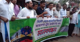 মোকাম্মিল হোসাইন:বিভাগীয় শহর ময়মনসিংহে টাউন হল চত্বর আজ ১৬ই জুলাই২০১৯ইং রোজ মঙ্গল বার সময় ১ঘঠিকায় সিলেট হতে ময়মনসিংহে সরাসরি আন্তঃনগর ট্রেন সার্ভিস চালু এবং সুনামগঞ্জ থেকে ময়মনসিংহ মহাসড়ক বাস্তবায়নের দাবিতে মানববন্ধন করেন,উক্ত মানববন্ধনের আয়োজন করেন বৃহত্তর ময়মনসিংহবাসী,এসময় উপস্তিত ছিলেন রেল ও রাস্তা বাস্তবায়ন কমিটির আহবায়ক আহসান মোহাম্মাদ আজাদ,সদস্য সচিব কাজী …