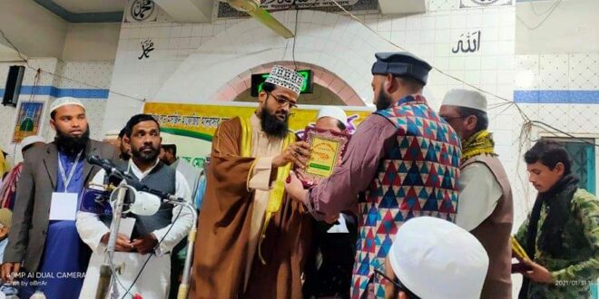 প্রধান অতিথির আলোচনায় মাওলানা আব্দুল্লাহ আলামিন সাহেবের বলেন, সকল দল মতের উপরে ইসলাম। আল্লাহর মনোনীত ধর্ম। আমাদের সকলের ঐক্যবদ্ধ হয়ে আল্লাহর সন্তুষ্টির জন্য কাজ করতে হবে। পরিশেষে মাদরাসার প্রাক্তন ছাত্রবৃন্ধ যাহারা মাদরাসা ও মসজিদের সাথে ধীর্ঘ দিন যাবতকাল খেদমতে ছিলেন ও বর্তমানে আছেন তাদেরকে সম্মাননা স্বারক প্রাধান করা হয়। সম্মাননা স্বারক দেয়া হয় মাদ্রাসার প্রতিষ্ঠাতা আলহাজ্ব হাফেজ মোঃ আবুল কাশেমকে। দীর্ঘ 35 বছর মসজিদের খেদমতে থাকা হাফেজ মোঃ হাফিজ উল্লাহ,মসজিদের বর্তমান খতিব একেএম জয়নুল আবেদীন। মরহুম হযরত মাওলানা আমজাদ হোসাইন সাহেব কে। সর্বশেষে বিশ্ববাসীর মানবতার কল্যান মুক্তির জন্য দোয়া করে মাহফিল শেষ করা হয়।