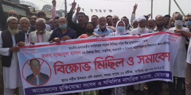 বুধবার দুপুর ১২ টায় শহীদ উসমান গনি ময়দানে মুক্তিযোদ্ধা সংসদ ও সম্মিলিত নাগরিক সমাজ এর উদ্যোগে এ প্রতিবাদ বিক্ষোভ মিছিল ও সমাবেশ আয়োজন করেন জাতির শেষ্ঠ সন্তান বীর মুক্তিযোদ্ধা সংসদ ও সম্মিলিত নাগরিক সমাজ।