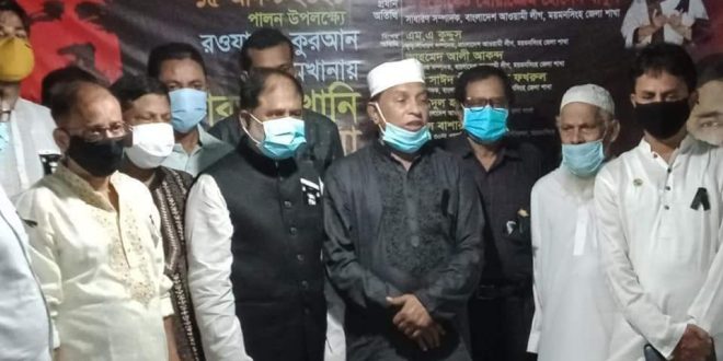 শোকাবহ ১৫ আগষ্ট জাতীয় শোক দিবস ও জাতির পিতা বঙ্গবন্ধু শেখ মুজিবুর রহমান ও বঙ্গবন্ধুর শহীদ পরিবার এর ৪৬তম শাহাদাত বার্ষিকী উপলক্ষে ময়মনসিংহ জেলা আওয়ামী লীগের উদ্যোগে পতাকা উত্তোলন, কালোব্যাজ ধারন, পুষ্পস্তবক অর্পণ, মিলাদ ও দোয়া, অসহায় গরীবদের মাঝে খাবার বিতরনসহ বিভিন্ন কর্মসুচী পালন করেছে করা হয়েছে।