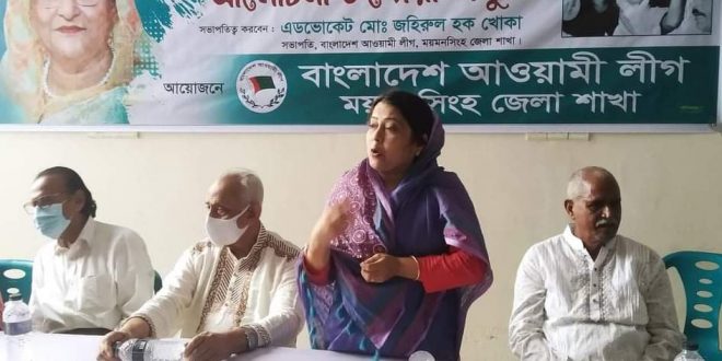 দিবসটি যথাযোগ্য মর্যাদায় উদযাপনের লক্ষে ১৭ মে দুপুর সাড়ে ১২ টায় জাতির জনক বঙ্গবন্ধু শেখ মুজিবুর রহমানের প্রতিকৃতিতে পুষ্পস্তবক অর্পণ ও আলোচনা সভা অনুষ্ঠিত হয়। ময়মনসিংহ জেলা আওয়ামী লীগের সম্মানিত সভাপতি আলহাজ্ব এডভোকেট জহিরুল হক খোকা মহোদয় এর সভাপতিত্বে ও যুগ্ম সাধারণ সম্পাদক এম এ কুদ্দুস এর পরিচালনায় আলোচনা সভায় বক্তব্য রাখেন মাননীয় জাতীয় সংসদ সদস্য মনিরা সুলতানা মনি, ময়মনসিংহ জেলা আওয়ামী লীগের সহ-সভাপতি এডভোকেট কবির উদ্দিন ভুঁইয়া, যুগ্ম সাধারণ সম্পাদক শওকত জাহান মুকুল ভাই, সাংগঠনিক সম্পাদক আহাম্মদ আলী আকন্দ ভাই, জেলা যুব লীগের সম্মানিত যুগ্ম আহবায়ক শাহ শওকত ওসমান লিটন ভাই, জেলা স্বেচ্ছাসেবক লীগের সভাপতি এডভোকেট এ বি এম নুরুজ্জামান খোকন ভাই, জেলা তাতী লীগের সম্মানিত সাধারণ সম্পাদক আমানুল ইসলাম জলিল, জেলা ছাত্র লীগের সভাপতি আল আমিন প্রমুখ। অনুষ্ঠানের ময়মনসিংহ জেলা আওয়ামী লীগের সমানিত সাধারণ সম্পাদক জননেতা এডভোকেট মোয়াজ্জেম হোসেন বাবুল ভাই এর সুস্হতা কামনা করে দোয়া করা হয়। এ সময় ময়মনসিংহ জেলা আওয়ামী লীগের সহসভাপতি অধ্যাপক ইউসুফ খান পাঠান ভাই, আলহাজ্ব মোমতাজ উদ্দিন মন্তা ভাই, দপ্তর সম্পাদক আবু সাইদ দীন ইসলাম ফকরুল ভাই, বন ও পরিবেশ সম্পাদক মিরন চৌধুরী ভাই, যুব ও ক্রীড়া সম্পাদক রেজাউল হাসান বাবু ভাই, সাংস্কৃতিক সম্পাদক মোস্তাফিজ বাশার ভাষানী, তথ্য ও গবেষণা সম্পাদক এডভোকেট আইনুল হক, সম্মানিত সদস্য ও ফুলবাড়িয়া উপজেলা আওয়ামী লীগের সভাপতি আলহাজ্ব এডভোকেট ইমদাদুল হক সেলিম ভাই, জেলা যুব লীগের যুগ্ম আহবায়ক শাহরিয়ার মোহাম্মদ রাহাত খান ভাই, জেলা কৃষকলীগের সহসভাপতি কামরুল ইসলাম, মহানগর কৃষক লীগের সহসভাপতি নুর আলী তালুকদার, জেলা ছাত্র লীগের সাধারণ সম্পাদক হুমায়ুন কবির সহ নেতৃবৃন্দ উপস্থিত ছিলেন। আলোচনা সভা শেষে জাতির জনক বঙ্গবন্ধু শেখ মুজিবুর রহমান এর আত্মার মাগফেরাত কামনায় ও দেশরত্ন শেখ হাসিনার সুস্বাস্থ্য কামনাসহ দেশ জাতির মঙ্গল কামনা করে মোনাজাত করা হয়।