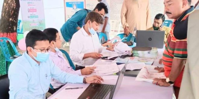 ভূমি অফিসে না এসে ডিজিটাল ভূমি সেবা গ্রহণ-প্রতিপাদ্যে সদর উপজেলা ভূমি অফিসে ঘরে বসে ভূমি সেবা সপ্তাহ বুথ স্থাপন করা হয়েছে।