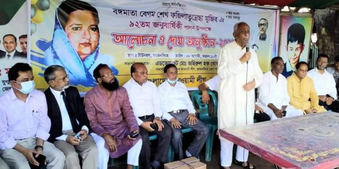 ময়মনসিংহে নানা কর্মসূচির মধ্য দিয়ে বঙ্গবন্ধু শেখ মুজিবুর রহমানের সহধর্মিণী বঙ্গমাতা শেখ ফজিলাতুন্নেছা মুজিবের ৯২তম জন্মদিন পালিত হয়েছে।